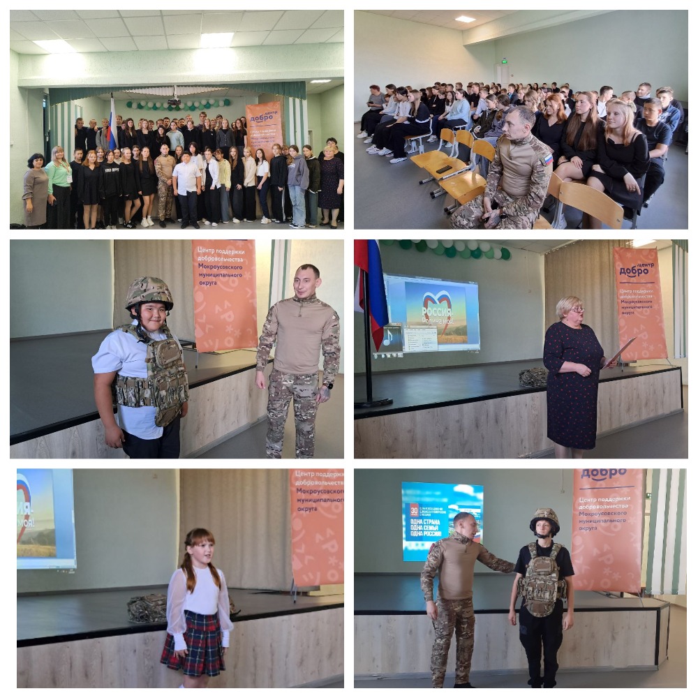 Сегодня ученики 8, 9 классов Мокроусовской школы №2 посетили Урок мужества, посвященный Дню воссоединения Донбасса и Новороссии с Россией. Об истории памятной даты и её предпосылках рассказала Людмила Владимировна Глухих, социальный координатор Курганского филиала государственного фонда "Защитники Отечества" в Мокроусово. Почётный гость мероприятия ветеран СВО Антон Сергеевич Баращенко, в своём выступлении подчеркнул важность патриотического воспитания, физической подготовки ребят, как будущих защитников Родины. Также ветеран предложил примерить бронежилет и каску школьникам, они смогли на себе почувствовать хотя бы часть тяжести солдатской службы. В свою очередь, ребята подготовили номера художественной самодеятельности. Проникновенно исполнила стихотворение о Родине Старцева С., под аплодисменты зрителей прозвучала песня в исполнении Байлашова А. Посвященное Донбассу, миру, дружбе, согласию между людьми завершилось мероприятие общей песней о России. Отметим, что мероприятие проведено специалистами «Добро.Центра» при поддержке социального координатора Курганского филиала государственного фонда"Защитники Отечества" в с.Мокроусово.